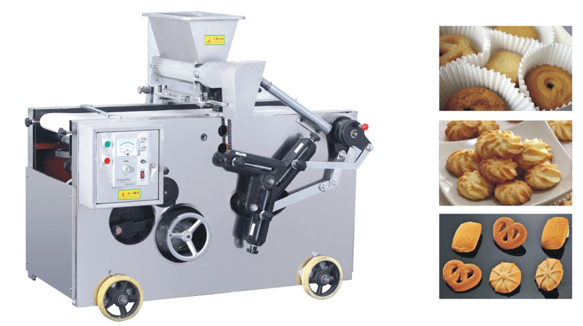 概述: 曲奇糕點機,是通過面團擠出成形,能生產多種獨特花式點心和曲奇餅干坯的成形機,具有技術先進、結構緊湊、多功能、操作簡單等特點,深受廣大用戶所歡迎,也是投資者目前市場最理想的新型儀器機械之一。該機具有多種模具,能生產幾十種花式曲奇餅干,用戶可根據需要自行調節(jié)選擇。成形的花式點心與曲奇餅干,形態(tài)獨特、花紋清晰、造型美觀。該機生產的生坯采用熱風旋轉爐及隧道爐烘烤均可